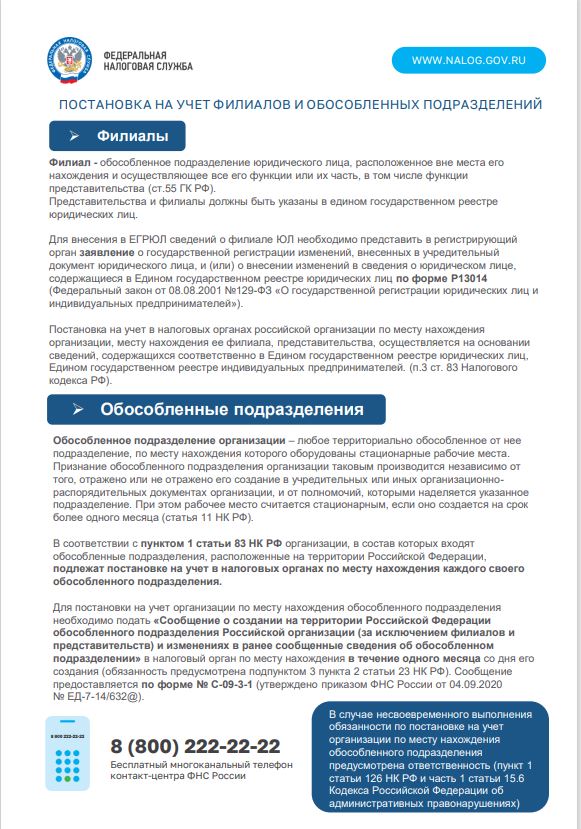 - Регистрация обособленных подразделений – начальник отдела регистрации и учета налогоплательщиков №2 Зверева Алена Валерьевна;